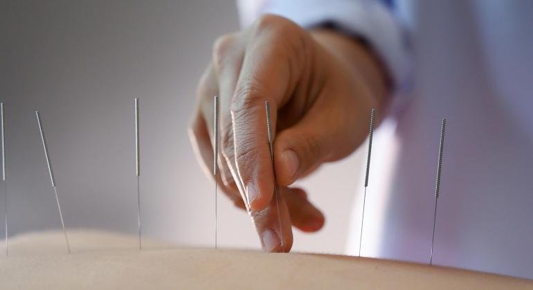 Alternative medicinal treatment using thin needles inserted into the skin to alleviate pain or other symptoms of a disorder.